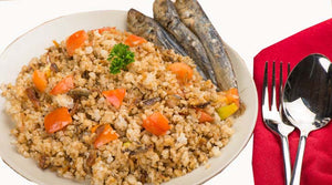 Risotto is a northern Italian rice dish cooked with broth until it reaches a creamy consistency. The broth can be derived from meat, fish, or vegetables. Many types of risotto contain butter, onion, white wine, and parmesan cheese. It is one of the most common ways of cooking rice in Italy